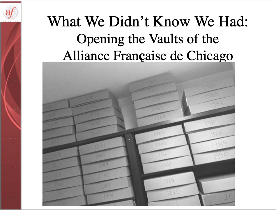 Following is a summarized version of my text in History of the Alliance Française de Chicago.