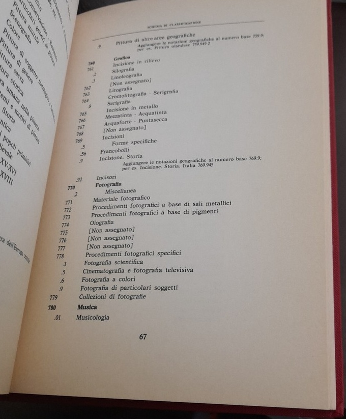 Bibliografia Nazionale Italiana, schema di classificazione (1982!) ♥